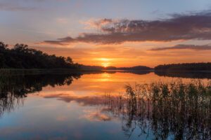 Naturområdet her byder på smukke stier og kan særligt anbefales til solnedgang, hvor solen går ned mod vest på den anden side af vandet.